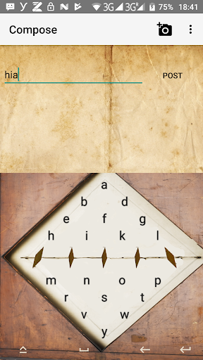 This application includes a virtual keyboard based on 5 Needle Wheatstone Telegraph that must be used for typing in a twitter client.
