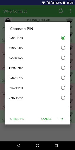 • Connect with WPS Default Pin Generator (At least 15 PINs displayed)