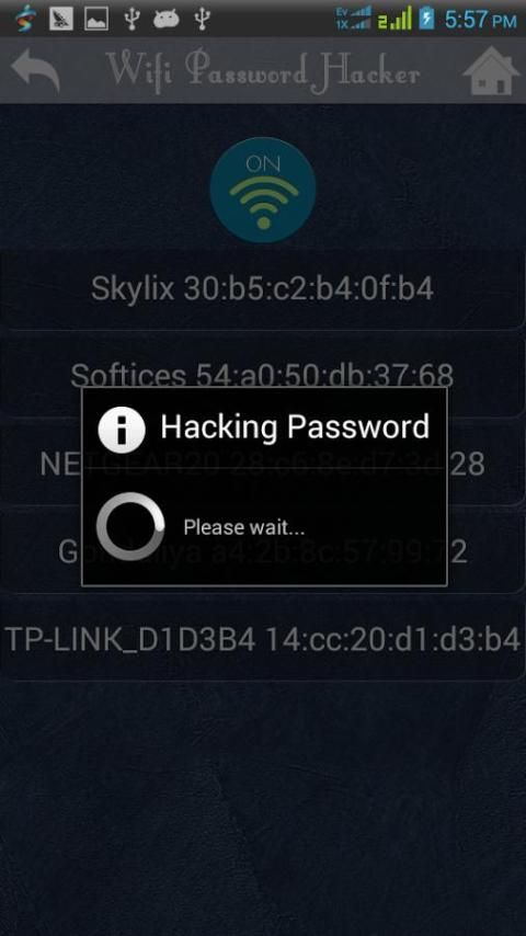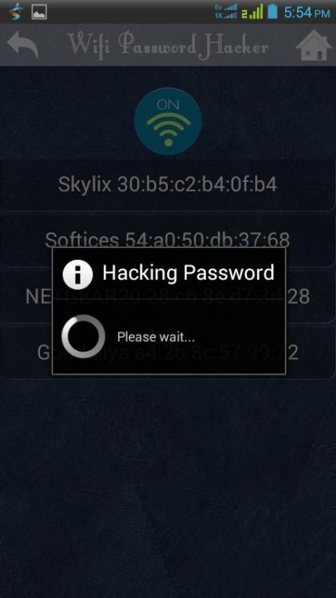 WIFI Hacker Prank is a JOKE app. It only pretends hacking into secured wifi network.