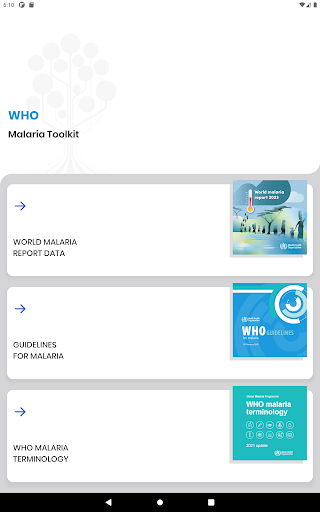 세계 보건기구 (WHO) 말라리아 툴킷은 말라리아와 관련된 모든 자원을위한 앱입니다.단일 리소스에서 말라리아에 대한 모든 WHO의 현재 지침과 "World Malaria Report"의 최신 결과, 데이터 및 트렌드를 함께 제공합니다.