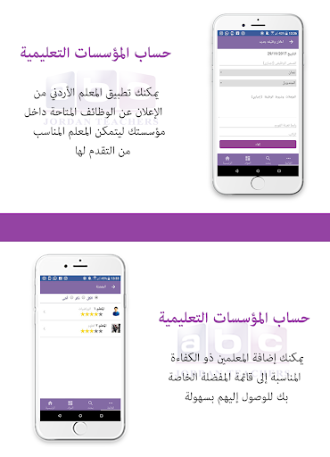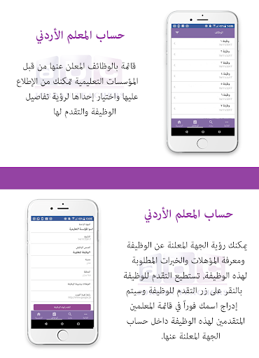 The teacher application ... is the first application of its kind that is concerned with the teacher and his needs, as well as students and educational institutions on the other hand. This application presents a large list of Jordanian teachers so that educational institutions and the families of students can search for the desired teacher in all research methods, either through the educational stage, subject or type of education. Educational institutions can also offer their jobs and the teacher applies for these jobs through the application. The application is available in Arabic and English.