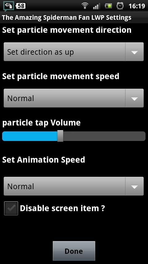 Like most teenagers, Peter parker is trying to figure out who he is and how he got to be the person he is today. Peter is also finding his way with his first high school crush, Gwen Stacy, and together, they struggle with love, commitment, and secrets. As Peter discovers a mysterious briefcase that belonged to his father, he begins a quest to understand his parents' disappearance - leading him directly to Oscorp and the lab of Dr Curt Connors, his father's former partner. As Spider-Man is set on a collision course with Connors' alter-ego, The Lizard, Peter will make life-altering choices to use his powers and shape his destiny to become a hero. Written by Nicky Mitchell Peter Parker (Andrew Garfield) is an outcast high schooler who was abandoned by his parents as a boy, leaving him to be raised by his Uncle Ben (Martin Sheen) and Aunt May (Sally Field). Like most teenagers, Peter is trying to figure out who he is and how he got to be the person he is today. Peter is also finding his way with his first high school crush, Gwen Stacy (Emma Stone), and together, they struggle with love, commitment, and secrets. As Peter discovers a mysterious briefcase that belonged to his father, he begins a quest to understand his parents' disappearance - leading him directly to Oscorp and the lab of Dr. Curt Connors (Ifans), his father's former partner. As Spider-Man is set on a collision course with Connors' alter-ego, The Lizard, Peter will make life-altering choices to use his powers and shape his destiny to become a hero. Written by Columbia Pictures This is purely fan live wallpaper app and NOT OFFICIAL, Amazing spider-man is copyright of Marvel, Columbia Pictures ========== FEATURES : ========== Settings for background animation speed Settings for Disable Interaction Settings for moving particle number Settings for particle movement direction Settings for particle movement Speed Moving particle can be tapped and will pop Settings to adjust particle tap sfx volume Can be moved to SD Card ============================= DISCLAIMER ADVERTISING USED : ============================= This app might contains these ads in your device : 1. The Push Notification Advertising from Airpush 2-3x times a day 2. Smart-wall interstitial ad from Airpush 3. Browser Bookmark from Startapp 4. Search icon on homescreen by Startapp By Downloading this app you will be agreeing to Opt-in to the ad networks Airpush. This will help keep this app 100% free and help us bring you more cool wallpaper like this in the future. You can clear the push notification ads by pressing clear button, and you can skip the offer in smart wall interstitial ads by pressing back key. In order to give you a free app and keep developing more free apps in the future, we are integrating a search tool to our application. This will add a few access points to your device (hence the permissions) to direct you to the web search service. Please consider using the search to help us keep creating apps. You may delete the search icon, bookmark and homepage easily. Thank you. You can optout(unregistered) from the notification ads from the links below: Airpush Optout: http://www.airpush.com/optout Startapp Optout: http://www.startapp.com/opt.aspx ====== NOTE : ====== - All permission are required by Airpush and Startapp ad network - This live wallpaper is compatible with Go Launcher EX - Battery Efficient - Optimized for Galaxy S3 tag: amazing spiderman, spiderman, comics, spider-man, peter parker, emma stone, andrew garfield
