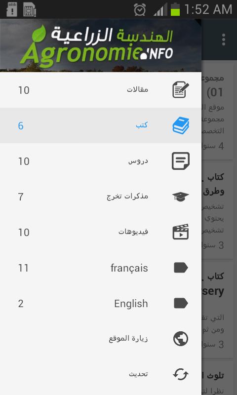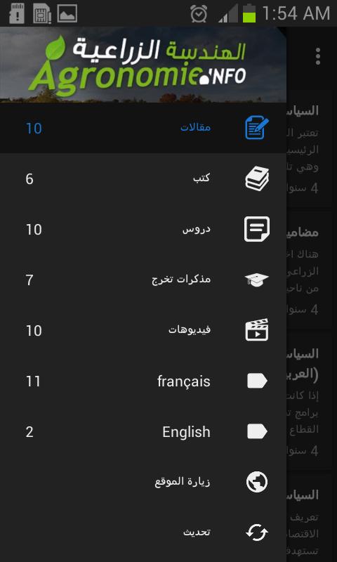 تطبيق خاص بموقع الهندسة الزراعية الذي تم اطلاقه في سنة 2015 ليصبح اكبر موقع عربي في مجال الزراعة باحتوائه على مكتبه ضخمة تضم الكثير من الدروس الكتب ومذكرات التخرج بالإضافة الى فيديوهات ومقالات في مجال الزراعة.