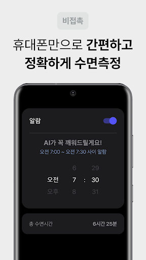 ● 알람 시간 설정 기준으로 30분 사이, 가장 일어나기 좋을 때 상쾌하게 일어날 수 있도록 AI가 깨워드려요.