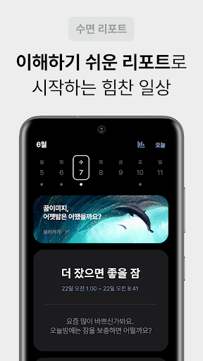 정확한 수면 측정, 최적의 수면 단계에서 울리는 AI 알람, 쉽게 해석된 리포트, 환상적인 꿈이미지 그리고 자기전 하루기록까지!