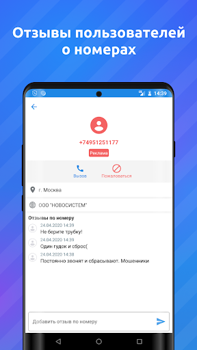 의 소유자의 명성에 대한 개인적인 복수 또는 고의적 인 피해가 아닙니다. 다른 사용자의 번호 평가 - 우리에게 편지를 보내십시오. 우리는 상황을 알아낼 것입니다.이 응용 프로그램을 작성하고 원치 않는 통화로부터 가능한 한 자신을 보호하는 것으로 충분합니다.