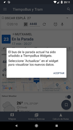 Nuevo acceso al servicio de tiempos del bus.