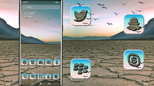 The Death Valley Launcher theme is an Android mobile theme with amazing effects, beautifully applied icons, and Crack Valley wallpaper. This theme is suitable for most Android models. Install the Death Valley launcher theme and experience the cool and amazing home screen to make your phone cool.