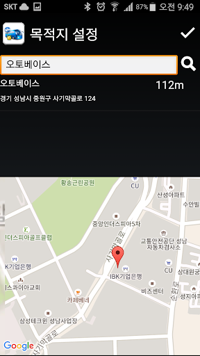 도착 위치를 한번 설정하면 리스트로 관리가 되며, 설정한 목적지와의 직선 거리를 실시간으로 표시합니다.