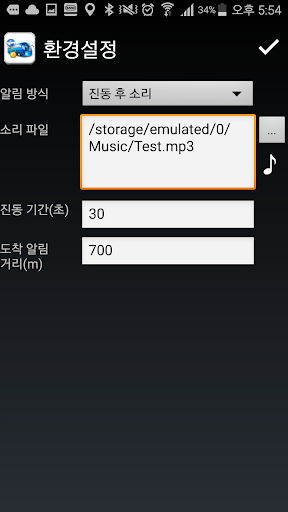 알림방식을 소리, 진동, 진동 후 소리 등 다양하게 설정이 가능하며 소리는 스마트폰에 저장된 mp3 파일을 설정할 수 있습니다.
