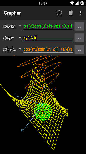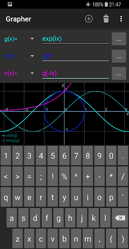 는 방정식 및 계산 식을 해결할 수있는 모든 기능 (복잡한 가치 포함)을 끌어 올 수있는 빠르고 효과적인 방정식 플로터입니다. 특히 학생, 교사 또는 엔지니어가있는 경우이 앱은 당신과 함께하게됩니다! 삼각법 및 쌍곡선 기능, 극 좌표, 분화 등을 포함하여 광범위한 사전 정의 된 기능을 사용할 수 있습니다. 유형을 입력하고 2D 및 3D 모드에서 강력한 수학 엔진에 의해 즉시 처리되고 표시됩니다. 또한, 기능은 서로를 참조 할 수 있고 가변 슬라이더가 효율적인 시각화를 허용합니다.