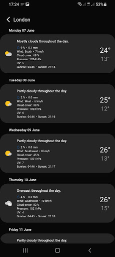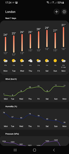 ui : 아름답고 간소화 된 레이아웃을 즐기십시오. 또한 사용하기 쉬운 UI는 필요한 모든 관련 정보를 신속하게 시각화하는 데 도움이됩니다. - 실시간 및 정확한 일기 예보 : 현재 온도, 기상 조건 및 기타 정보의 실시간 디스플레이.