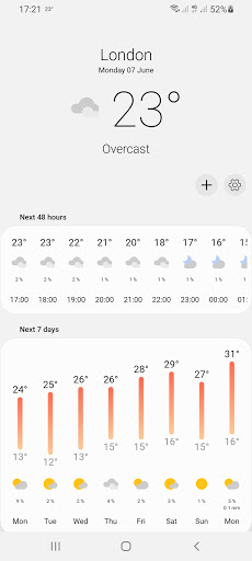 일기 예보는 자동으로 위치를 찾고 현지 기상 조건을 표시 할 수 있습니다.