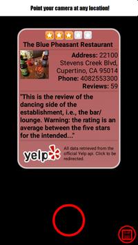 Retrieve the Yelp ratings for any food and drink location by just pointing your camera at it! OneTapReview does all the work for you and will present the location info to you such as reviews, ratings and the official yelp page. Locations can be saved and accessed at a later time.