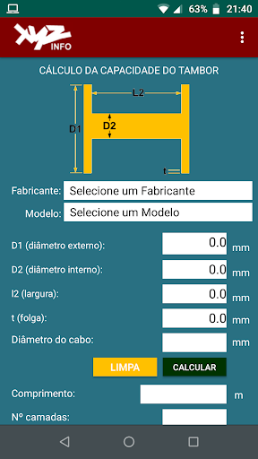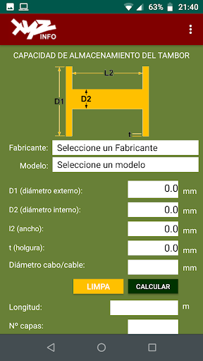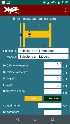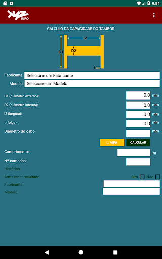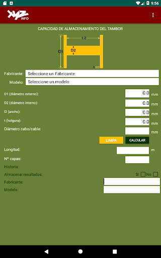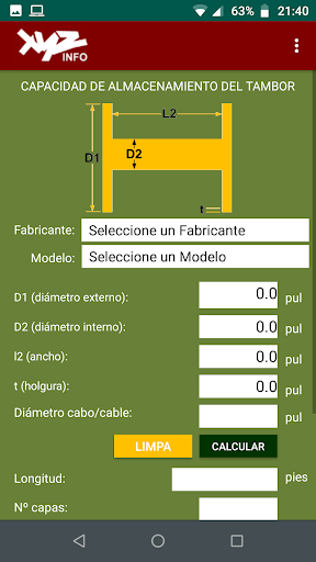 이 응용 프로그램 (앱)은 드럼 스풀링 능력을 계산하는 해상 산업을 지원하는 것을 목표로합니다.그것은 mileters와 인치와 함께 작동하며 영어, 스페인어 및 브라질 포르투갈어 언어로 인터페이스를 가지고 있습니다.그것은 또한 시장에서 사용할 수있는 대부분의 장치와 호환됩니다.