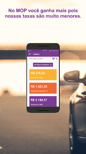 Com o MOP DRIVER você terá em seu celular a melhor ferramenta para aumentar suas viagens! Nosso sistema inteligente sempre prioriza os motoristas que estão perto do local do usuário. Com apenas um clique, você aceita a corrida e recebe todas as informações do passageiro, incluindo o nome e endereço de origem e destino da viagem.