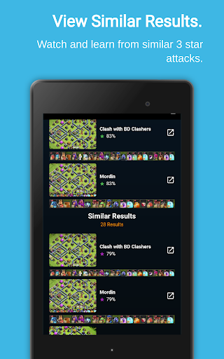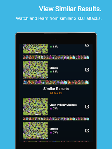 Clashers가 적의 공격을 방어하고 다양한 육군 구성 및 공격 전략을 배우고 3 성급 공격을 얻는 기회를 늘릴 수 있도록 돕는 앱입니다.