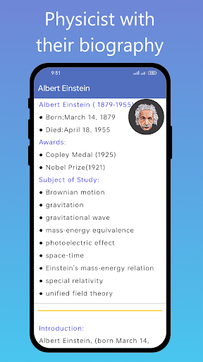 물리학 자 : 삶에 대해 배우십시오.Galileo Galilei, Isaac Newton, Albert Einstein 및 Marie Curie를 포함하여 역사상 가장 유명한 물리학 자들의 공헌.물리 앱을 사용하면 물리학 분야를 형성하고 모든 시간의 가장 중요한 발견을 한 과학자들에 대한 더 깊은 이해를 얻습니다.: 획기적인 연구와 우주에 대한 우리의 이해에 미치는 영향을 포함하여 물리학의 노벨상 수상자에 대해 배우십시오.물리 앱을 사용하면이 훌륭한 과학자들의 작업에서 영감을 얻어 자신의 학업 목표를 달성하도록 동기를 부여합니다.