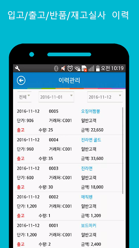 4. 이력조회(기간별/입고, 출고, 반품 구분별)