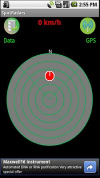 SpotRadars is a speed camera warning system using FoxyTag, the worldwide most complete speed camera database. It signals fixed speed cameras, mobile speed cameras and ghosts (places where there are often speed controls).