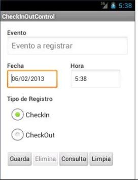 Aplicación que permite registrar los eventos realizados en el día para un mejor control de actividades. Te permitirá hacer un CheckIn y CheckOut por cada evento registrado. Con funcionalidades como realizar un mantenimiento y poder consultarlos por fecha.