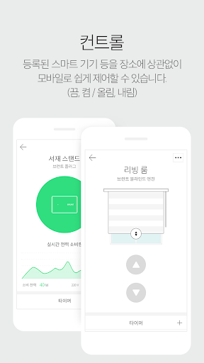 스마트폰과 IoT 하드웨어 제품을 연결하여 원격으로 어느 장소에서든 제한 없이 등록된 기기들의 온/오프 등을 제어할 수 있으며, 타이머 기능으로 원하는 시간에 더욱 편리하게 사용할 수 있습니다. 또한 실시간 에너지 소비량을 볼 수 있는 모니터링 서비스도 갖추고 있습니다.