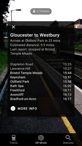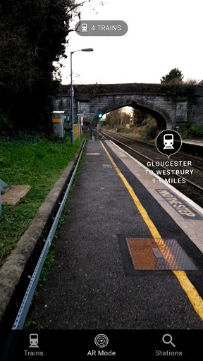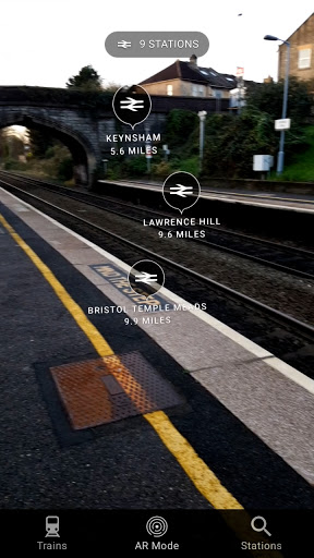 AR 모드의 기차 및 역 전망은 몰입 형 증강 현실 경험에서 인근 기차 및 철도역을 보여줍니다. 이 앱은 가장 가까운 역에서 출발하는 열차를 찾아 표시합니다. 열차를 타는 것은 호출 지점과 마지막으로보고 된 위치에 대한 자세한 정보를 보여줍니다. 증강 현실에서 근처의 스테이션을 봅니다. 주어진 시간에 기차의 추정 된 보간 된 위치를 예측할 수 있습니다. 예상 열차 위치는 서비스가 현재 서비스가 현재 일찍 실행 중인지 여부에 대한 정보와 함께지도에 표시됩니다.