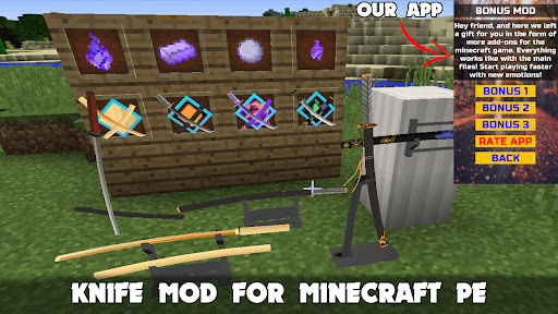 Minecraft PE에 대한 Knife Mod는 확장에 대한 특별한 이름을 제시하지 않았으므로 이름을 그대로 명명했습니다.이것은 Minecraft 기반암의 세계에 다양한 유형의 무기를 도입하는 또 다른 모드입니다.다른 무기 빌드는 철 무기 유형을 소개하지만 앞으로 더 많은 것을 도입 할 가능성이 있습니다.우리는 무기의 품질, 소비 된 재료 및 손상 사이의 균형을 찾으려고 노력했습니다.애드온은 포켓 버전을 위해 개발되었으므로 마법 및 기타 무기 개선을 추가 할 수 없었습니다.동시에, 입자는 이용 가능했지만 개발자는 여전히 추가하지 않았다. 일반 무기는 초강대국을 가질 수 없기 때문에 여전히 추가하지 않았다.게임 플레이, 수정 중 하나를 설치할 수 있습니다.이것이 우리가 위에서 이야기 한 것입니다.그러나 이것은 멋진 동물, 새로운 위치 또는 소품을 추가하는 일반적인 추가가 아니라 독특한 모드가 될 것입니다.Minecraft Pocket Edition 2022 용으로 항상 업데이트 된 나이프 모드를 다운로드 할 수 있습니다!