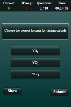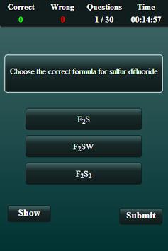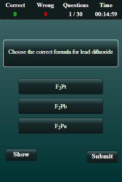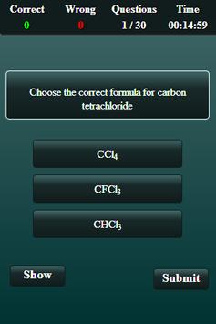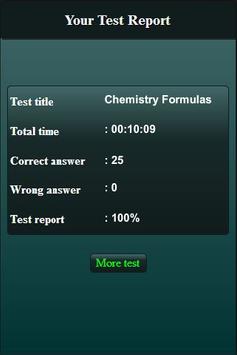 This App contains 10,000 questions. This Chemistry formulas test is the best way to improve your Chemistry formulas knowledge. This Chemistry formulas test app is perfect for lower, intermediate and upper levels.