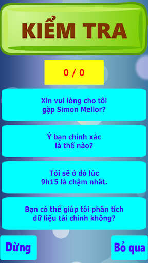 Chức năng KIỂM TRA (test English listening) sẽ hỗ trợ các bạn kiểm tra lại các câu hoàn chỉnh đã được trình bày trong các bài học cũng như trong phần luyện tập.