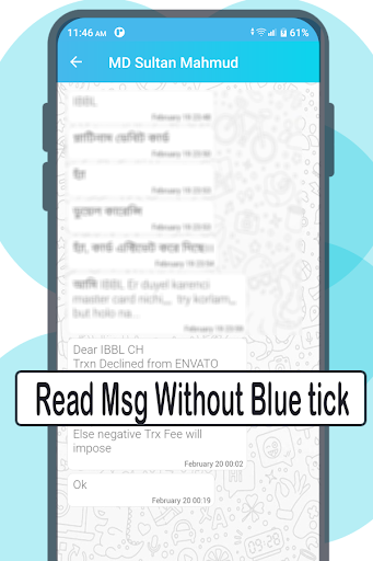 √ Read incoming text messages with invisible chat status.