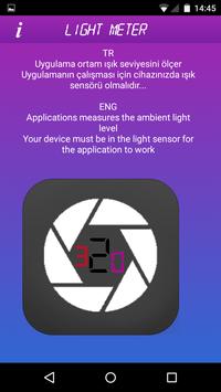 Light Meter measures the ambient light sensor light should be on your device to run this application