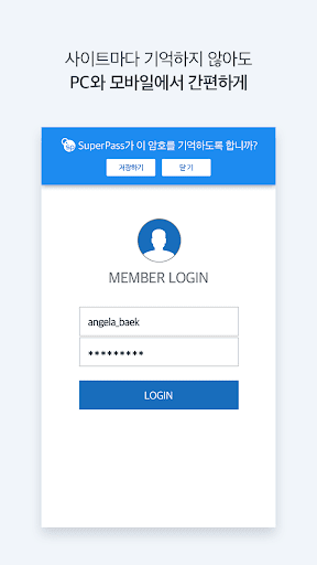슈퍼패스는 아이디 및 비밀번호를 외우지 않아도 모든 사이트에 로그인 할 수 있습니다.