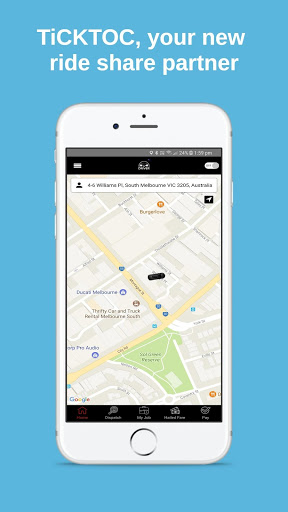 The TiCKTOC allows the taxi drivers to become visible to the customers easily via GPS facility. The driver can keep track ongoing trip. He can manage the profile information. The details of the trip such as pick up and drop location, time, round trip option etc., are received from the passenger. The approximate fare is calculated based on kilometers and sent to the passenger. The payments can be received via card or cash. The driver app allows to view the statistical information such as jobs done, jobs rejected, driven kilometers etc.