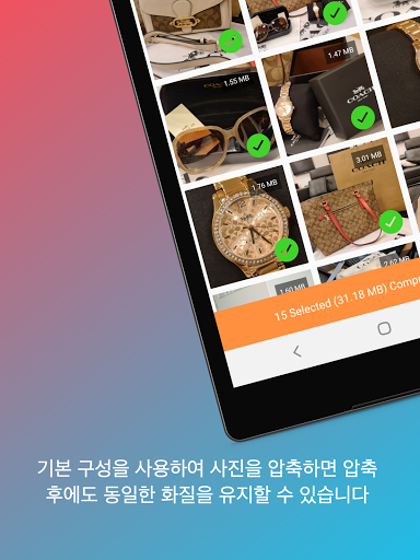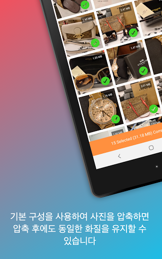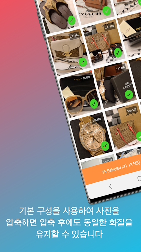 자동 사진 압축은 휴대폰 저장소에 충분한 공간이 없어 곤란했던 사용자들, 또는 SNS 인플루언서, 웹사이트 운영자, 블로거, 온라인 셀러, 디자이너, 아티스트, 여행자, 자산 대리인, 또는 단순히 자녀의 모든 순간을 기록하려고 하는 부모님들과 같이 사진을 자주 공유하고 업로드하는 사용자에게 이상적인 앱입니다. 이 앱의 친숙한 사용자 인터페이스를 사용하면 사진 품질을 저하시키지 않고도 휴대폰의 저장 공간을 확보할 수 있습니다.