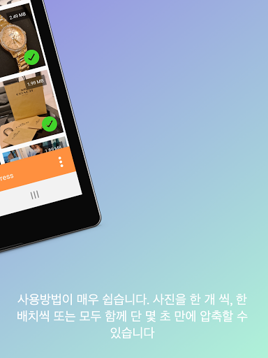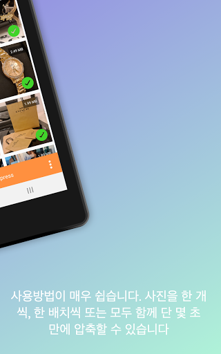 사진을 한 개 씩, 한 배치씩 또는 모두 함께 단 몇 초 만에 압축할 수 있습니다.