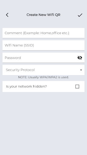 이 앱을 사용하면 WiFi 네트워크를 QR 코드로 변환하고 공유 할 수 있습니다.공유하고자하는 사람과 Wi-Fi 네트워크에 가입하십시오.