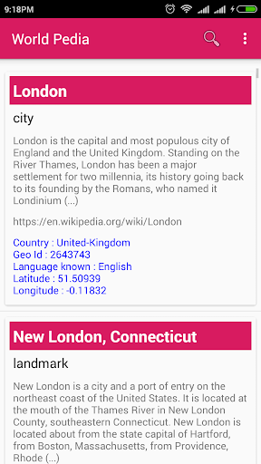 The Most Popular feature of this this application is Search. You can search any Place, Country, City, Landmark, Hospital, University, Museum, Playground, Monument,