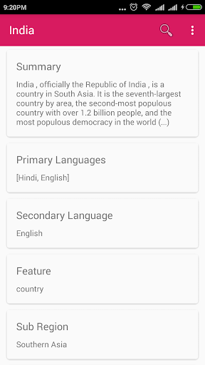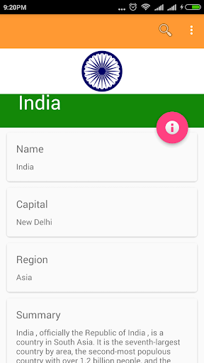 the World are listed. All the basic information of all Countries are here. Like Flag, Population, Area, Summary, Capital,Currency, Time zone, Calling code, Languages, Borders, Continent, Sub Continent, and Much more.