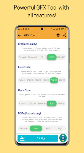 매우 낮은 그래픽에서 매우 높은 그래픽으로 선택할 수있는 25 개의 Readymade GFX 팩을 얻으십시오! 앱이 당신을 위해 그것을 선택할 때 장치에 가장 적합한 것을 선택하지 않고 게임 그래픽을 사용자 정의하십시오!