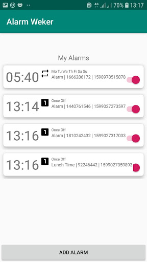 알람 시계를 편집하거나 삭제할 수 없으므로 목록이 다시 설치 또는 다시 설치하십시오. 더 이상 필요없는 알람 일정이있는 경우 빨간색 버튼을 이동하여 멈출 수 있습니다.