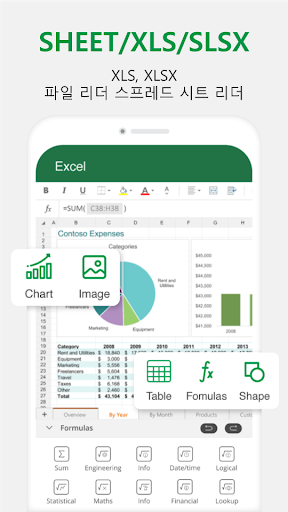 ★ XLS, XLSX 파일 리더 스프레드 시트 리더.