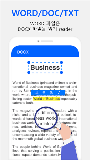 - 필수 컨트롤이 간단하고 우아한 리더 화면 DOCX 뷰어.
