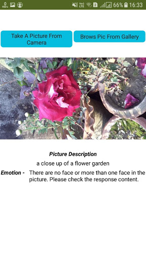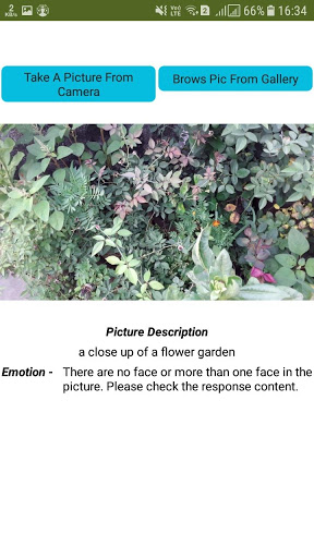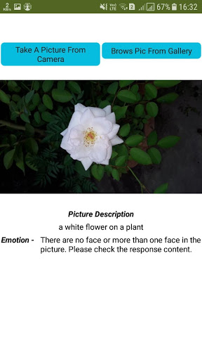 After opening the app Take a picture using the camera on your phone Or upload a photo from your gallery Then wait a couple of seconds and the app will tell you what this picture is about And if that image is a Selfie or someone else's picture Then the app will tell that person about the Emotional State ..