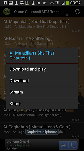 새로운 기능 Quran Soomaali MP3 Translation 1.0