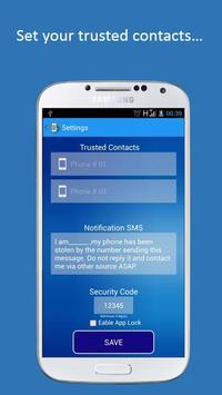 * Sends your phone location, lock code and IMEI number to your trusted friends numbers
