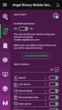 : for using of this module the user has to create the account on a portal mobile.angelbinary.com. The account has to be created only via app – Antitheft module. The internal password for module is created in the application and may be changed in the application or on the portal mobile.angelbinary.com