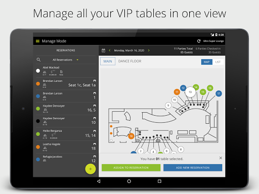 Upgrade your VIP. Easily manage all your tables in one view, allow staff to sell tables without texting, and even take table deposits to reduce no-shows. See full guest details to provide a personalized experience as soon as they arrive.