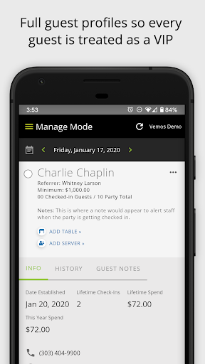 All your guest details in your pocket. See each guest’s unique profile from their last visit to what they’ve spent at your venue. Read notes from your staff, and see how to connect with them all at your fingertips.