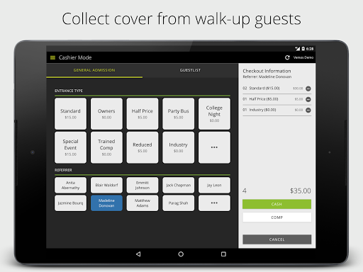 True accountability at your door. Collect cover payment from general admission guests, know who’s getting in for free or at a discount, and track which promoters are bringing them in for easy payouts.
